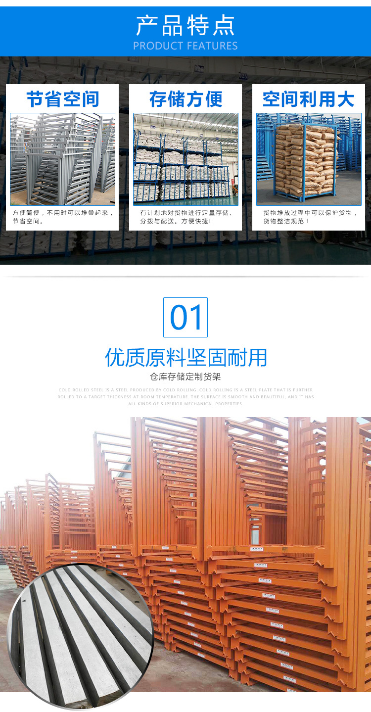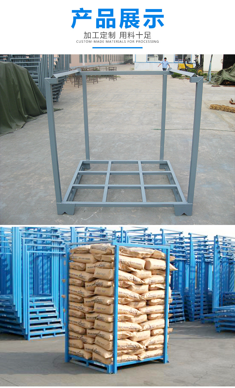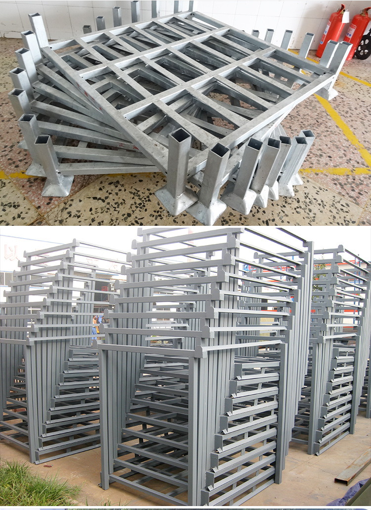 堆垛架,可相互堆3到4层,形成立体存储模式,无需借助货架、仓储笼和托盘等设备,适合用在租赁仓库、低矮的老式仓库或车间暂存区等不适合投资