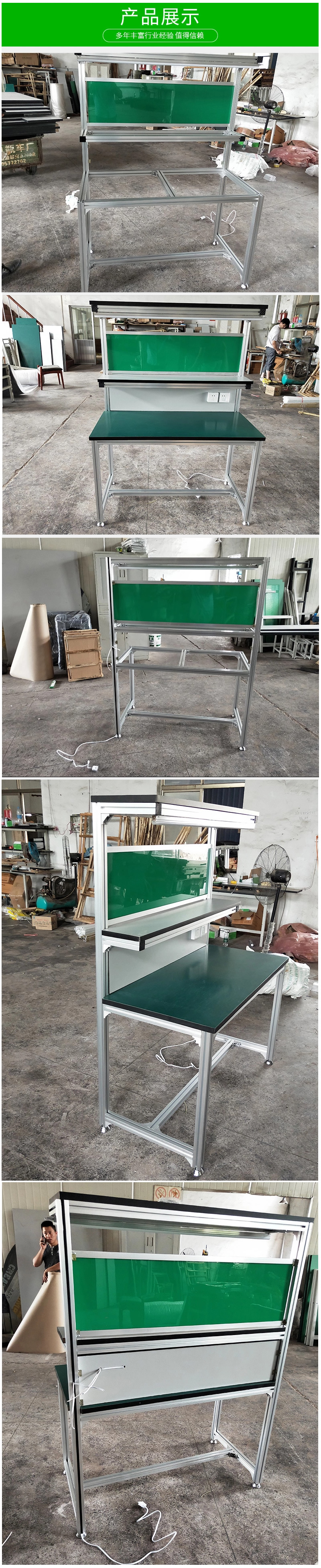 工作台采用优质冷扎板精工制作而成,坚固的工作桌框架,牢固平稳,可使工作桌承重1000kg;多种工作桌面选择,可配合不同使用的要求;工具吊柜(箱),侧柜(箱)灯架,调节脚杯,,外形美观;层板,抽屉质量上乘,承重大,抽屉内可根据需要任意分隔;节约空间,适用性强。